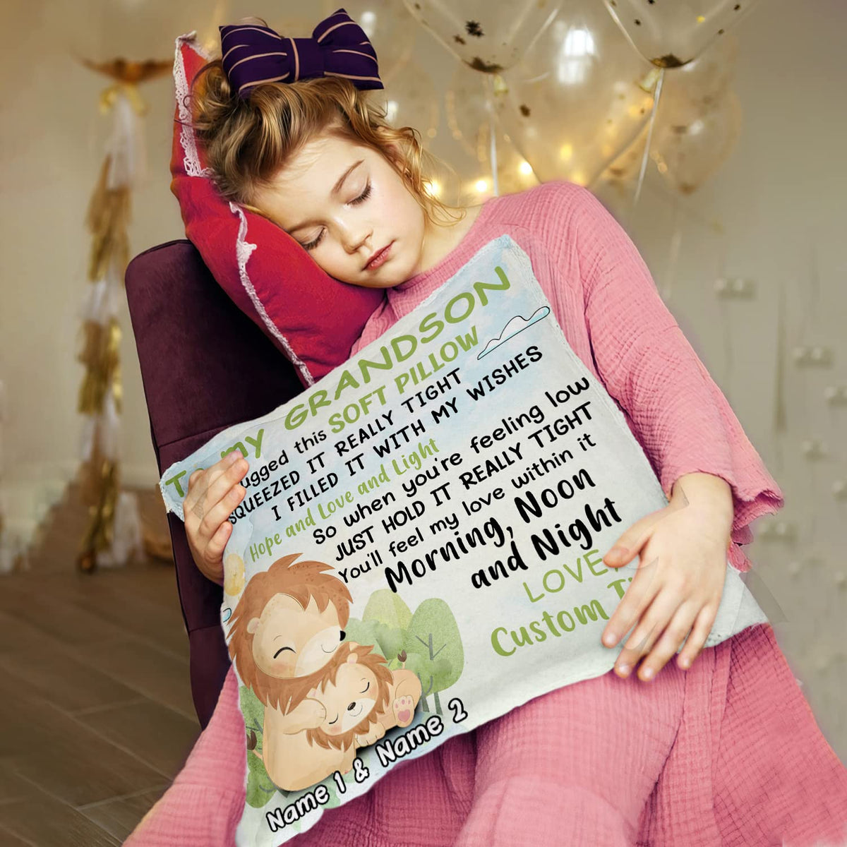 Personalized Granddaughter Grandson Lion Hug This Pillow