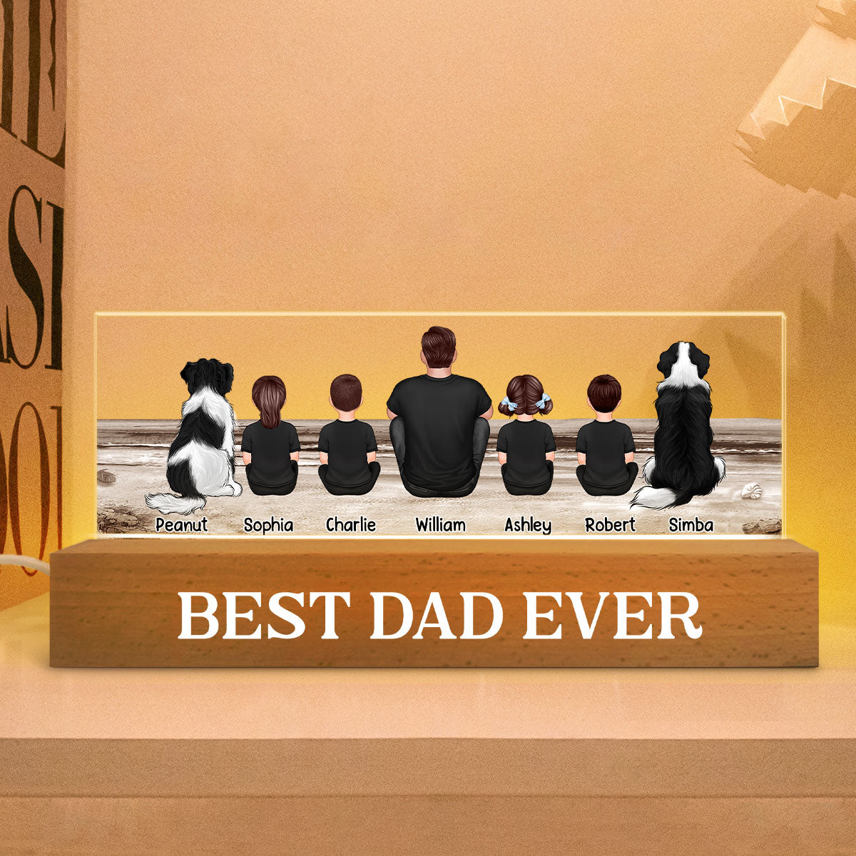 Family Sitting Back View Retro Vintage Beach Landscape Acrylic LED Night Light