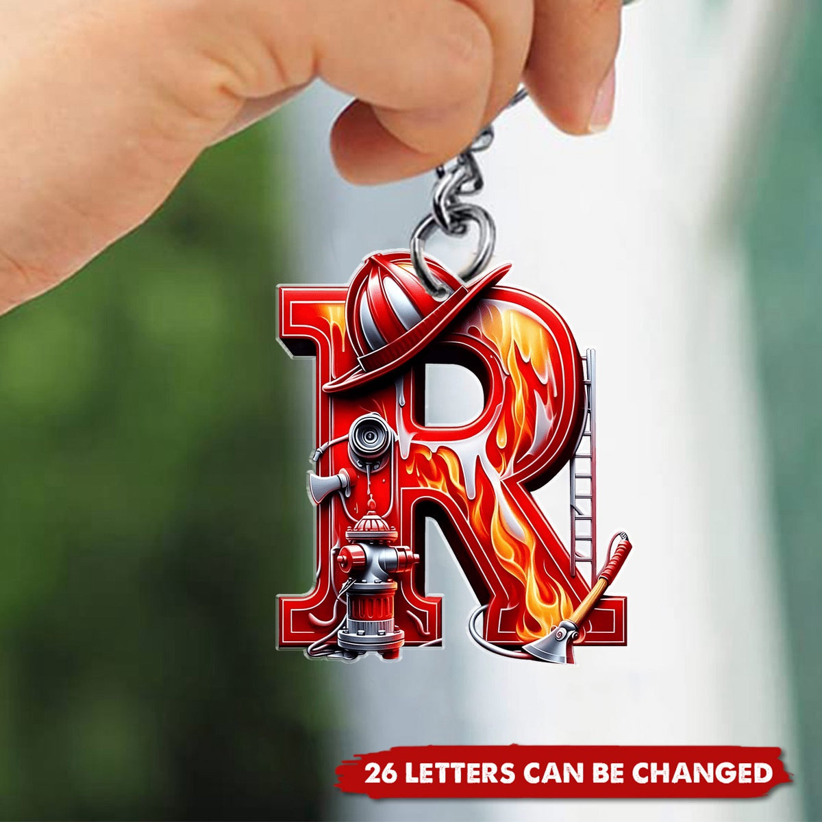 Custom Alphabet Letter Firefighter Gifts Keychain