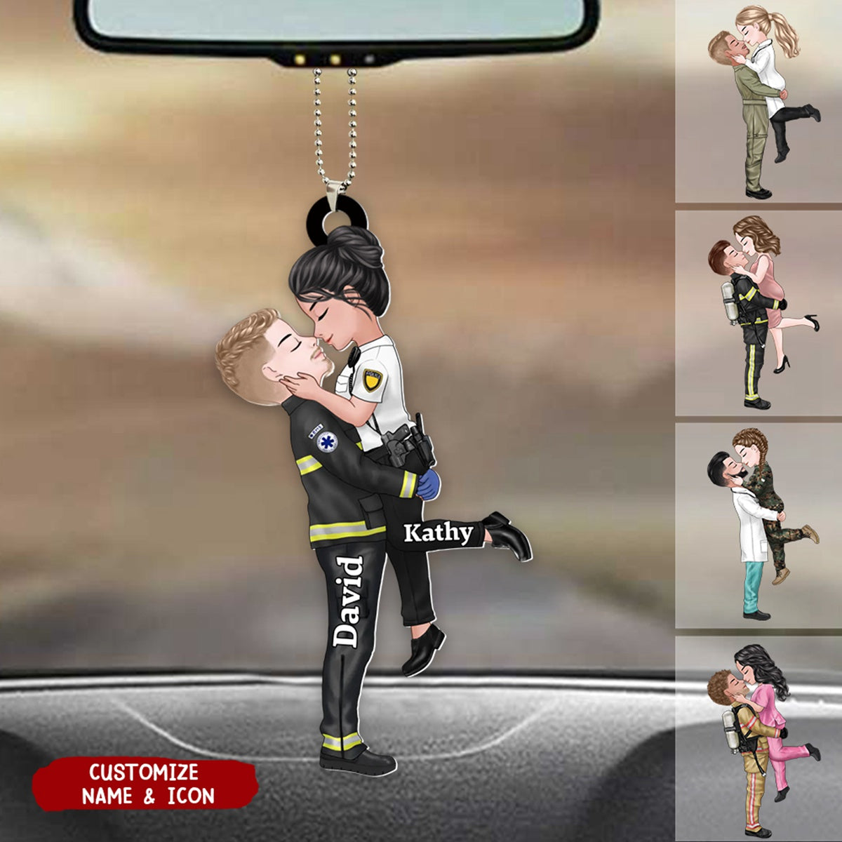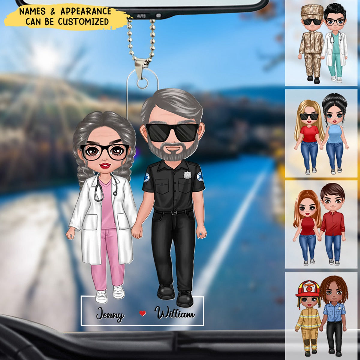 Personalized Acrylic Car Ornament - Family Gift - Firefighter, Nurse, Police Officer, Teacher