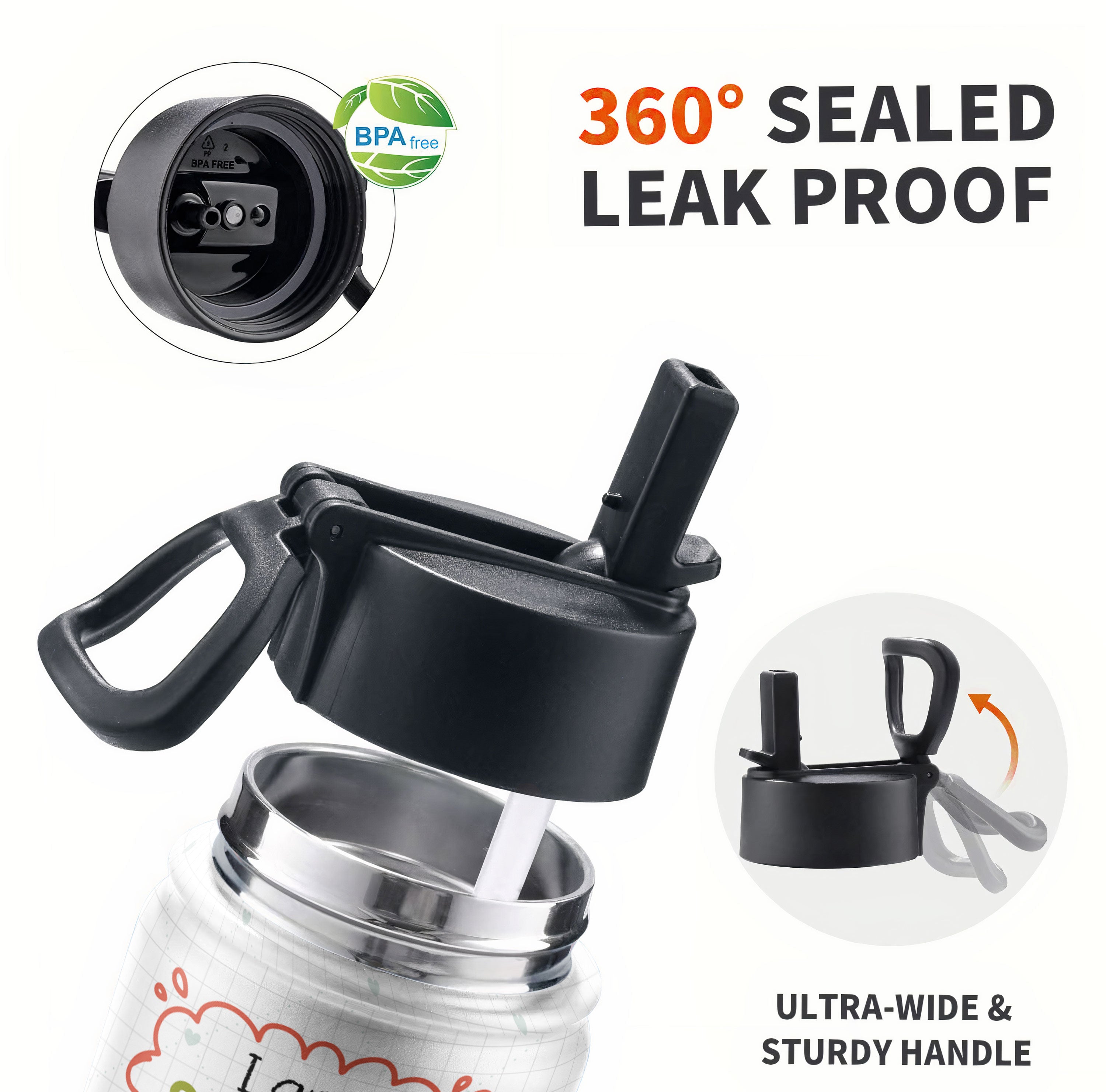 - Features a folding straw lid that is leak-proof when closed securely. The straw allows for one-handed drinking.