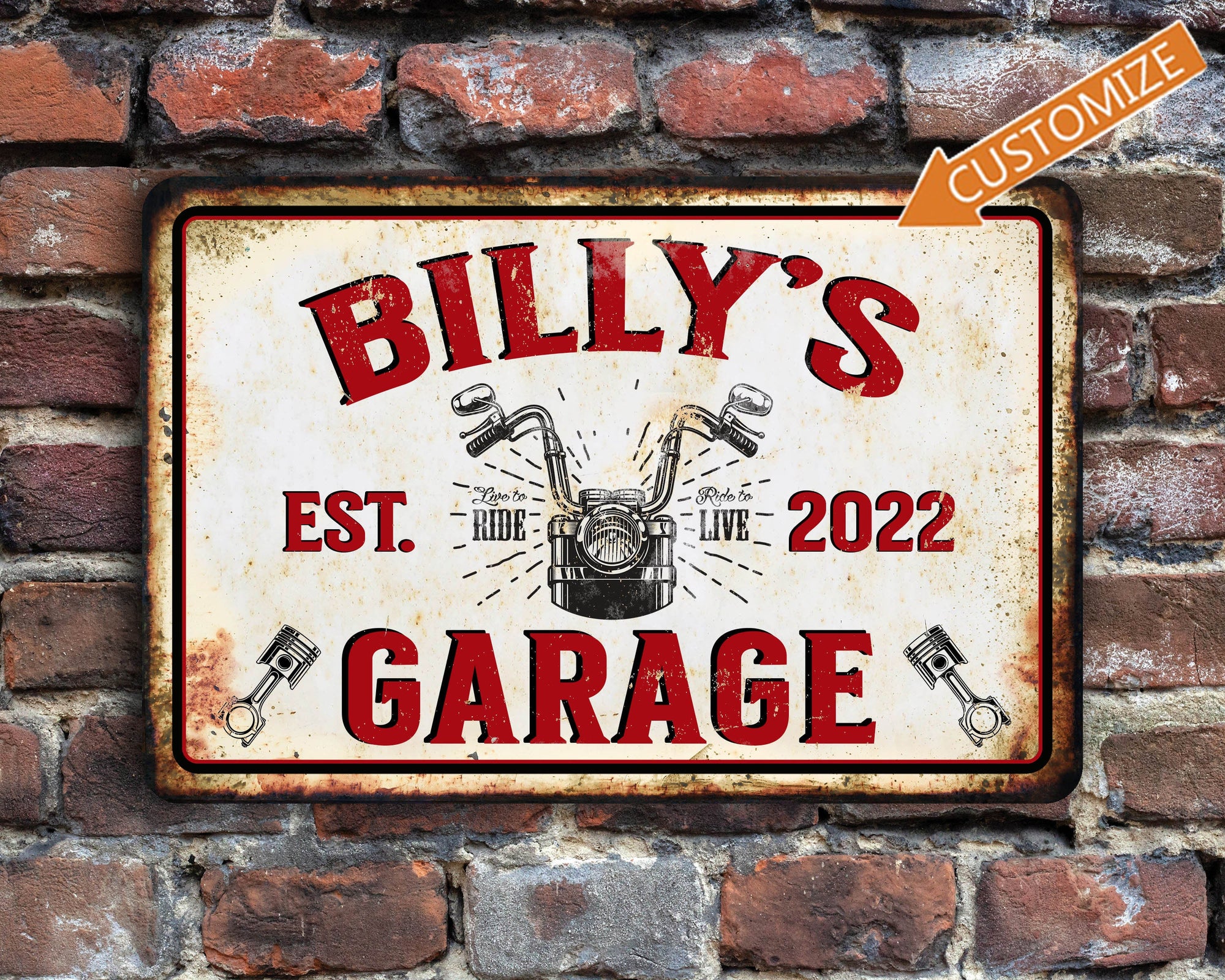 Personalized Motorcycle Sign | Custom Garage Sign | Vintage Design | Metal Sign