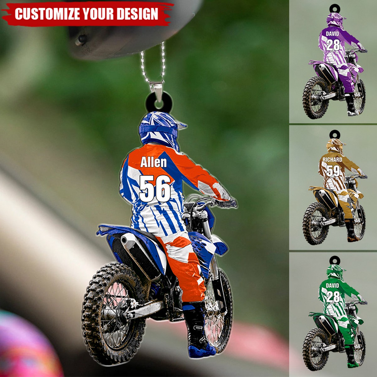 Motocross Racer Backview Personalized Car Ornament, Gift For Motocross Lovers