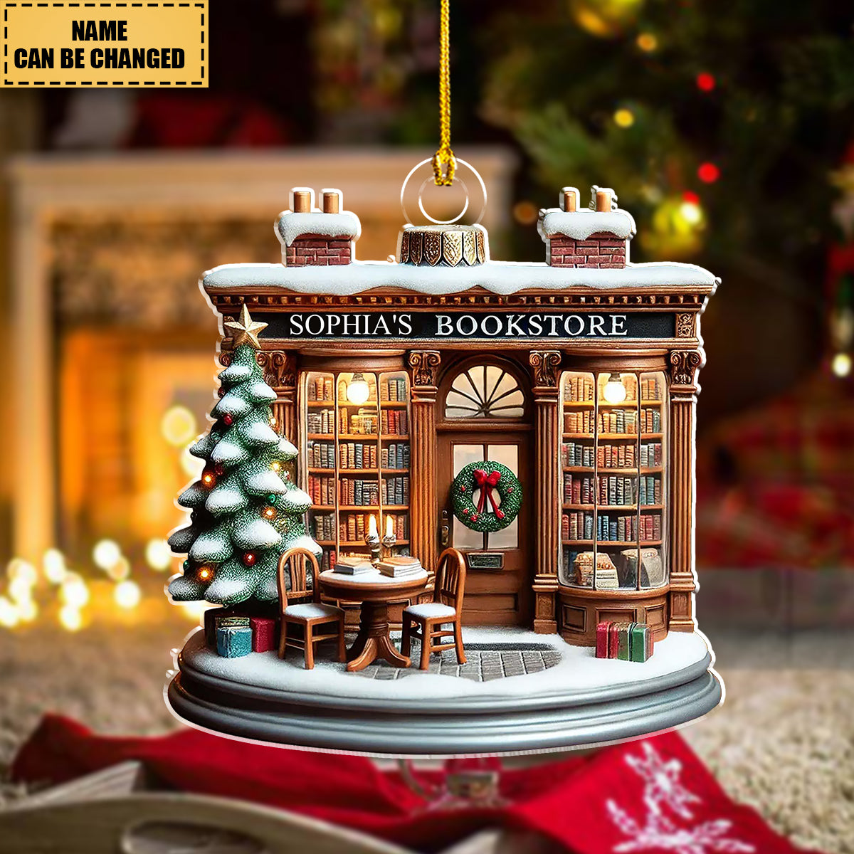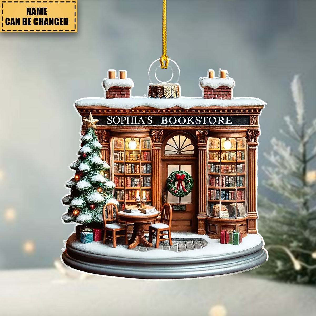 Personalized Bookstore Acrylic Ornament, Christmas Ornament Gift For Book Lovers