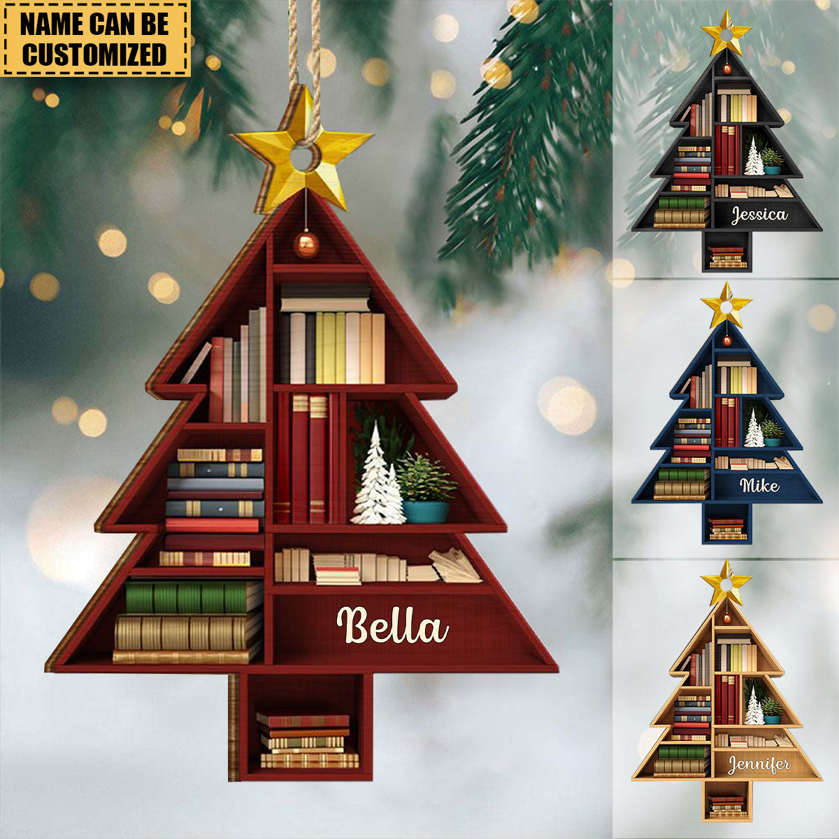 Reading Bookshelves Christmas Tree Shape - Personalized Shaped Wooden Ornament