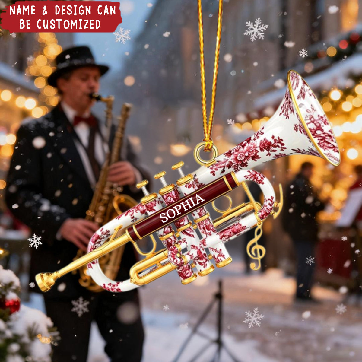 Trumpet Toile de Jouy Personalized Christmas Acrylic Ornament