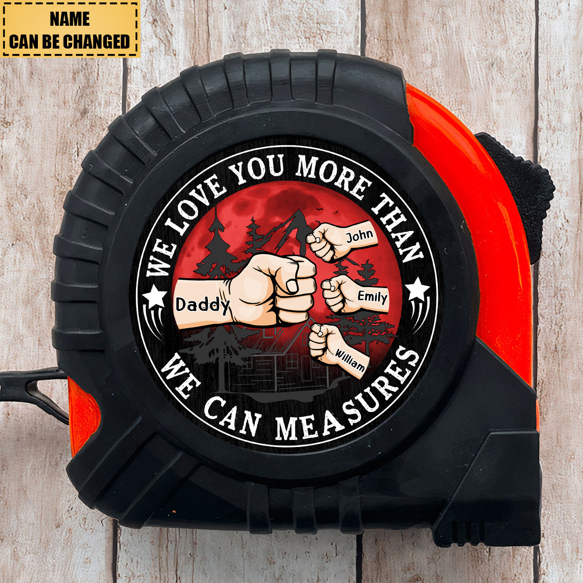 Looking for a unique Father's Day gift? Look no further than our custom funny tape measure! Cherish the bond with your dad, brothers, husbands, grandpas, and more with this special gift. Personalize it with your name and your kids' names to show off your unique style. With a heartfelt message, "We love you more than we can measure," it's a practical gift he'll never forget.