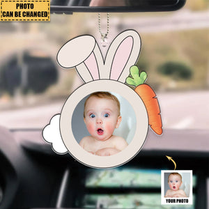 Bring laughter to your Easter celebrations with our Custom Funny Rabbit Face For Kid Family Easter - Personalized Photo Easter Car Ornament. This unique keepsake features your favorite photo, making it a fun and memorable addition to holiday decor. A perfect way to share joy and smiles with loved ones!