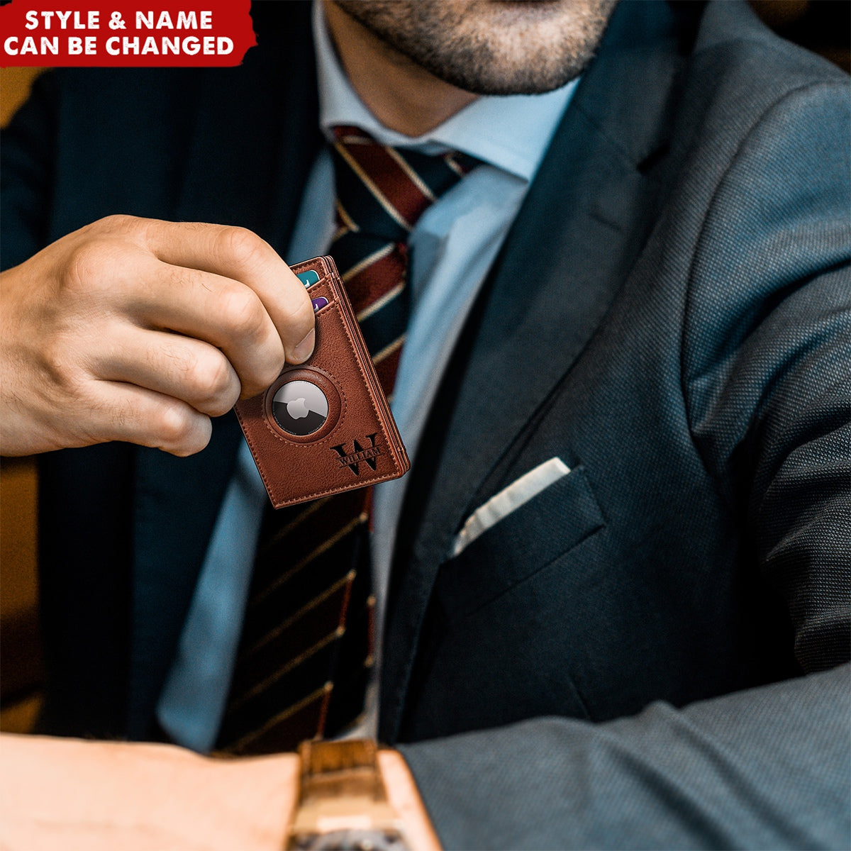 Where modern tech meets timeless craftsmanship. This slim, AirTag-compatible wallet keeps your cards secure, organized, and always within reach—now with a personalized touch.