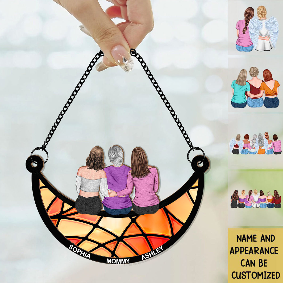 Mother & Daughter On The Moon Personalized Window Hanging Suncatcher Ornament
