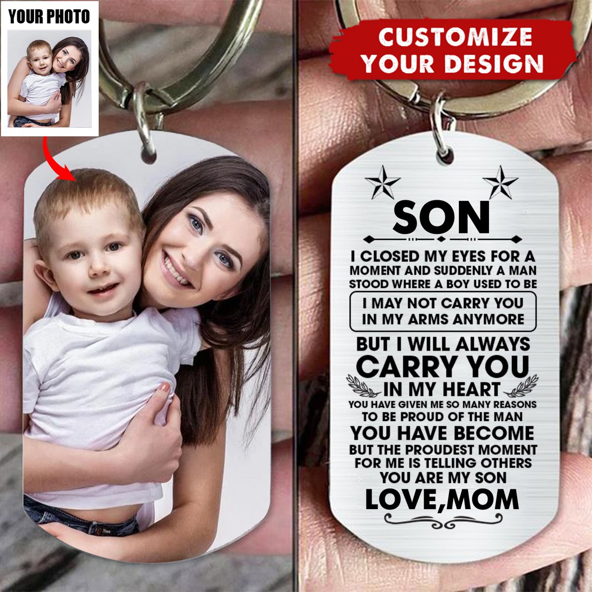 Choose our Personalized Stainless Steel Keychain to offer comfort and a lasting tribute to those cherished memories. Order now to create a meaningful keepsake for yourself or someone special.