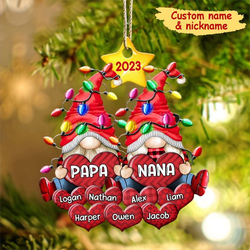 2024 Colorful Christmas Light Dwarf Couple Papa Grandma Nana Daddy Loves Sweet Heart Kids Personalized Ornament
