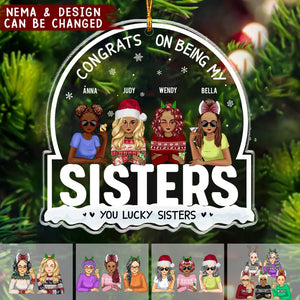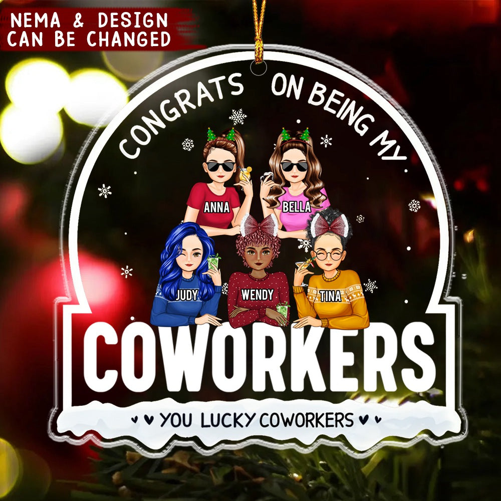 Christmas Congrats On Being My Besties Cartoon Drinking - Gift For Bestie - Personalized Custom Shaped Acrylic Ornament