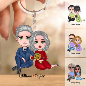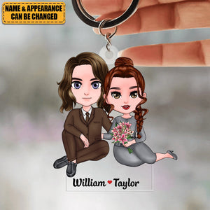 Couple Cuddling - Personalized Acrylic Keychain, Valentine's Day Gift For Couple