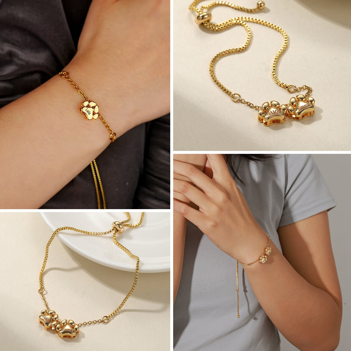 Stylized and modern, this sparkling 3D bubble pet paw bracelet features an custom paw print bead design, perfect for a birthday, or a special occasion. Personalize yours with pet's name to create a heartfelt keepsake. Perfect as a special gift for someone for honoring cherished memories with pet or a meaningful gift for linking pet love, this bracelet offers comfort and beauty with every wear.