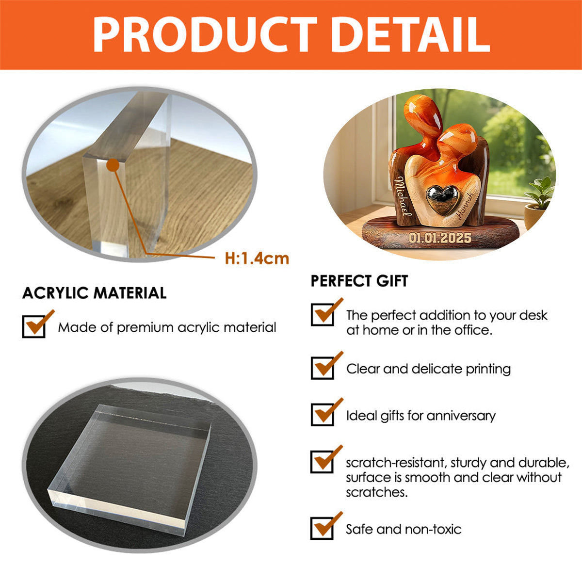 This acrylic plaque isn’t just decor—it’s a sunlit sanctuary for your love story. Personalize with your names and a sacred date, framing an elegant couple statue embraced by a shimmering heart inlay. Watch dawn transform it into stained-glass poetry:“Two souls, one silhouette—forever holding the light that first drew you together.”
