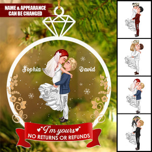 Gift For Couple, Happy Wedding Ring Personalized Ornament, I'm Yours No Returns Or Refunds