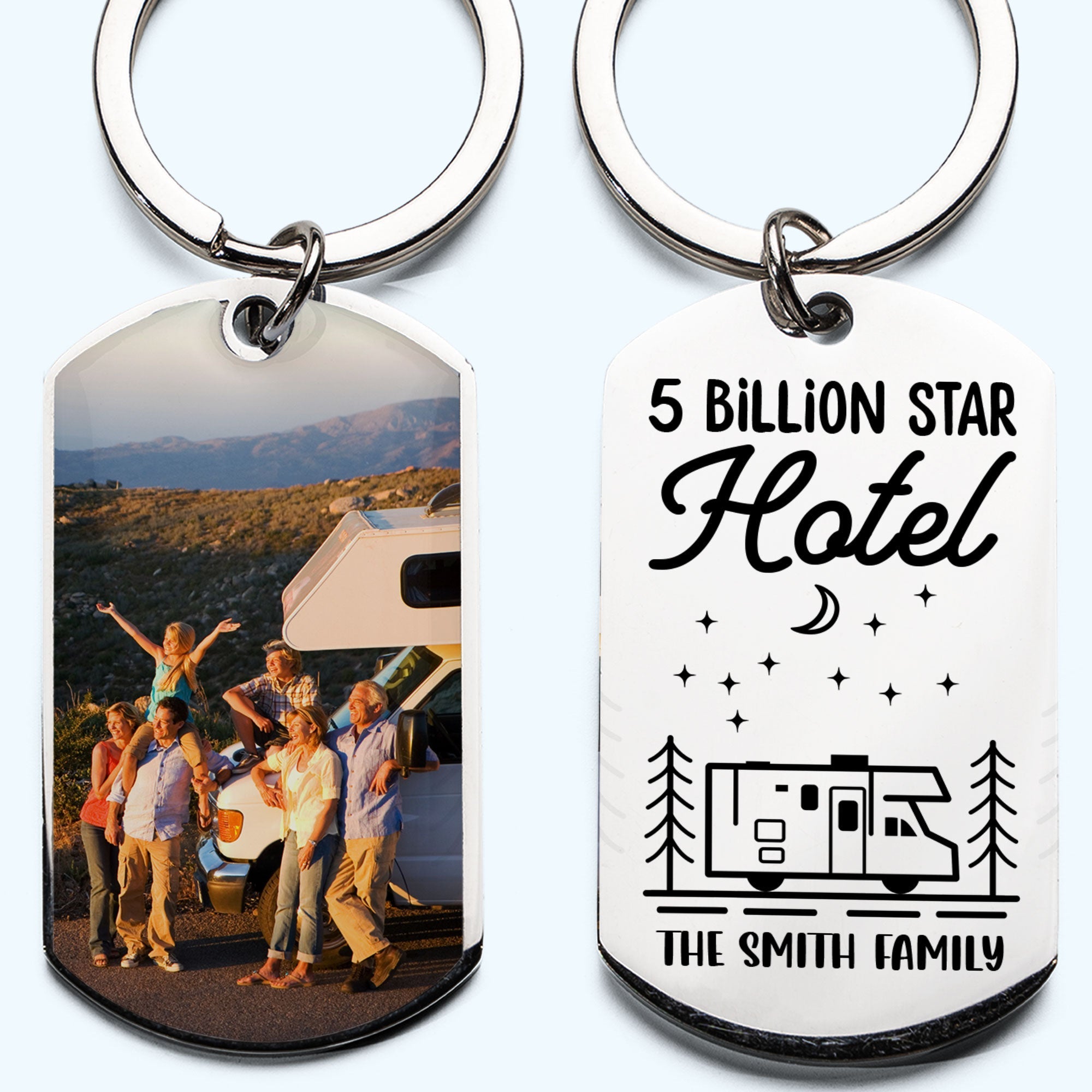 Happy Campers - Personalized Engraved Stainless Steel Keychain, Custom Photo
