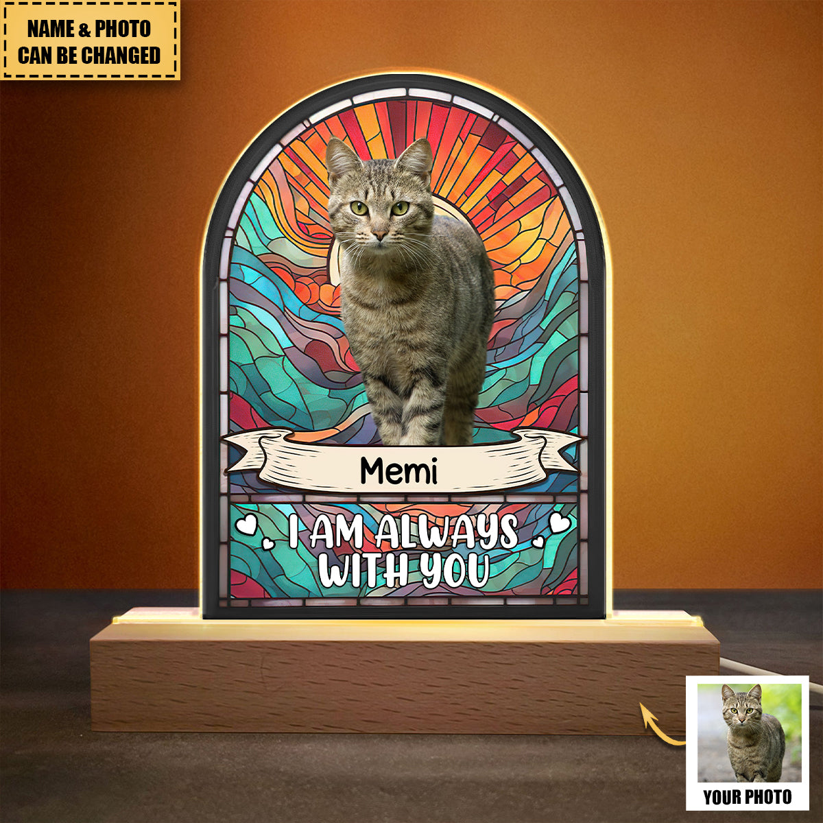 Looking for a heartfelt gift for someone who lost their beloved pet? Our Personalized LED Light is the perfect tribute. Customizable with a photo, name, or message, this elegant light keeps their pet’s memory alive. Crafted from high-quality acrylic with a wooden base, it’s a lasting and beautiful way to show you care. This memorial LED light will surely touch their heart and honor their furry friend's life.