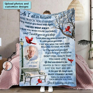 Memorial Upload Photo Cardinal Winter, As I Sit In Heaven Personalized Blanket