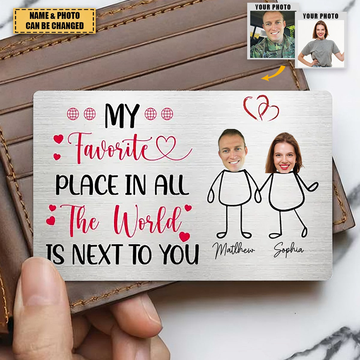 Introducing our personalized wallet card – a heartfelt way to carry cherished memories, moments, or loved ones with you wherever life takes you. Perfectly sized for wallets or purses, this ultrathin anodized aluminum card ensures your loving message stays close as a constant reminder of their importance. A meaningful keepsake suitable for any occasion.